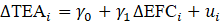 - represents the change in TEA between the earliest and latest available observations for country i;